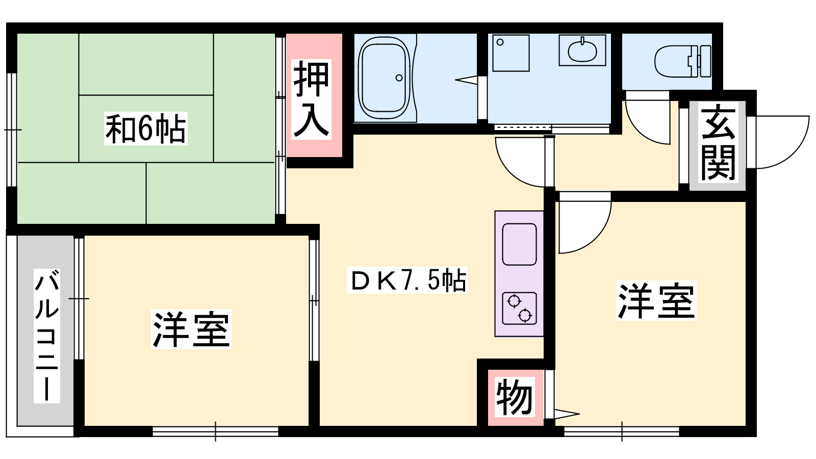 - LDK7.5帖、洋室6帖、洋室6帖、和室6帖