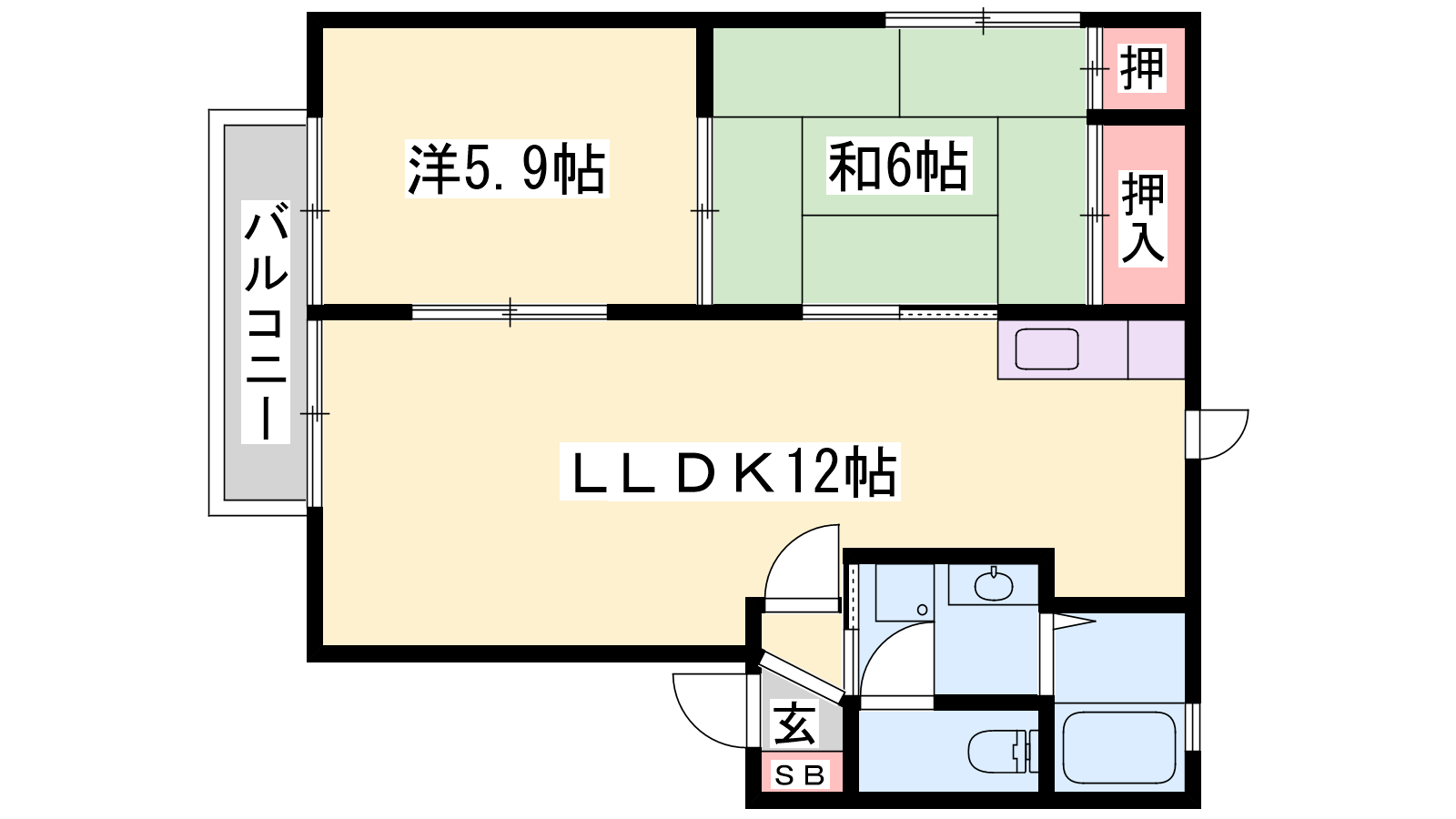 - LDK12帖、洋室6帖、和室6帖