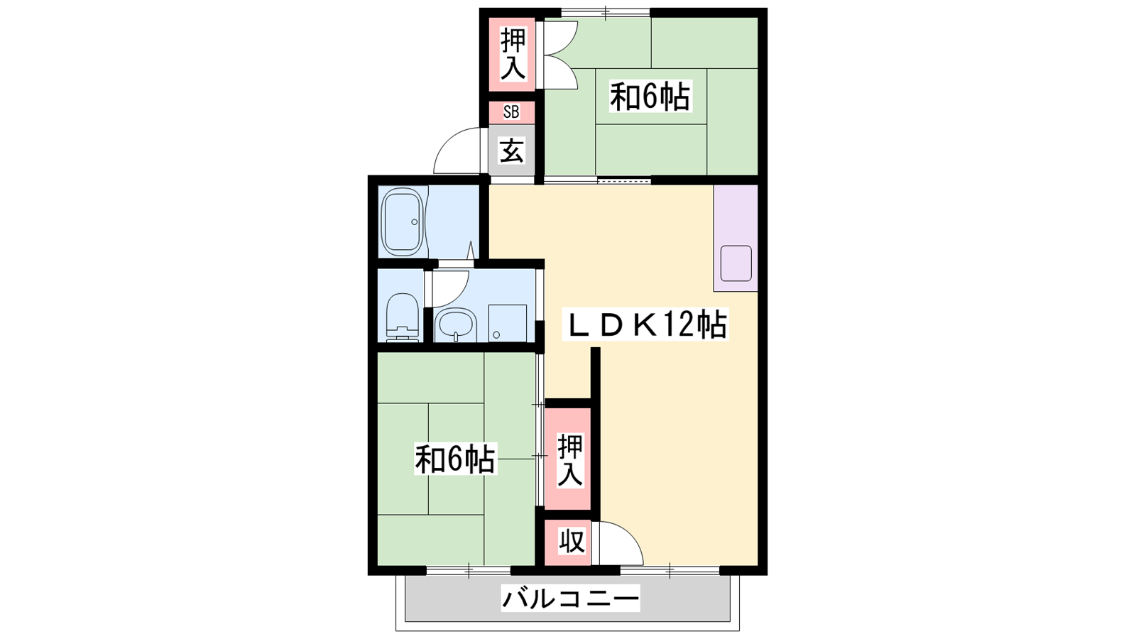 - LDK12帖、和室6帖、和室6帖