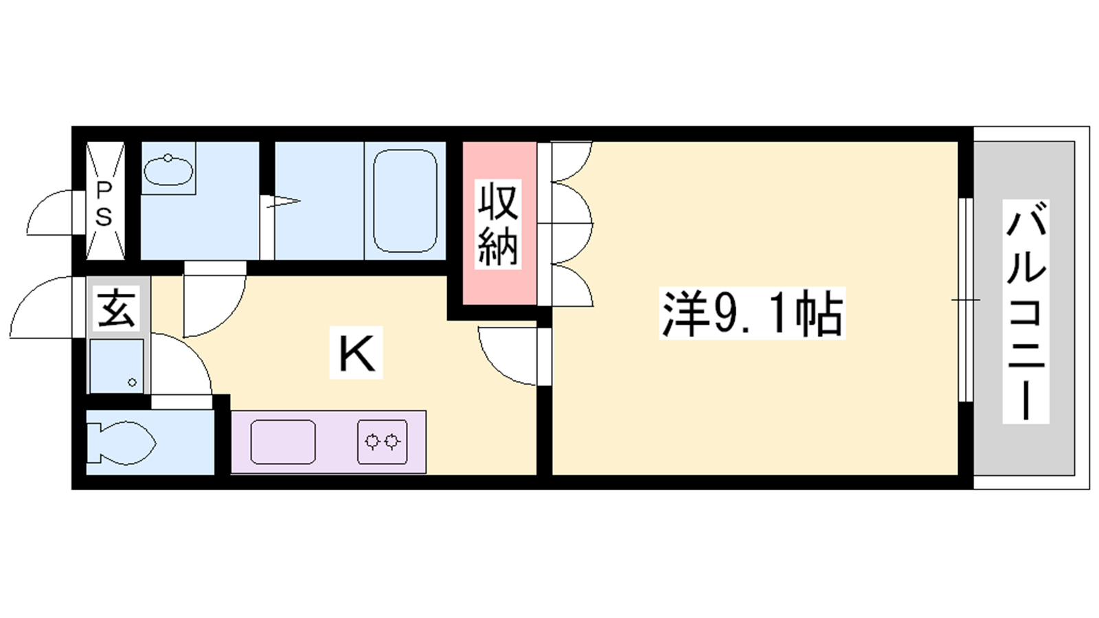 - K3帖、洋室9.1帖
