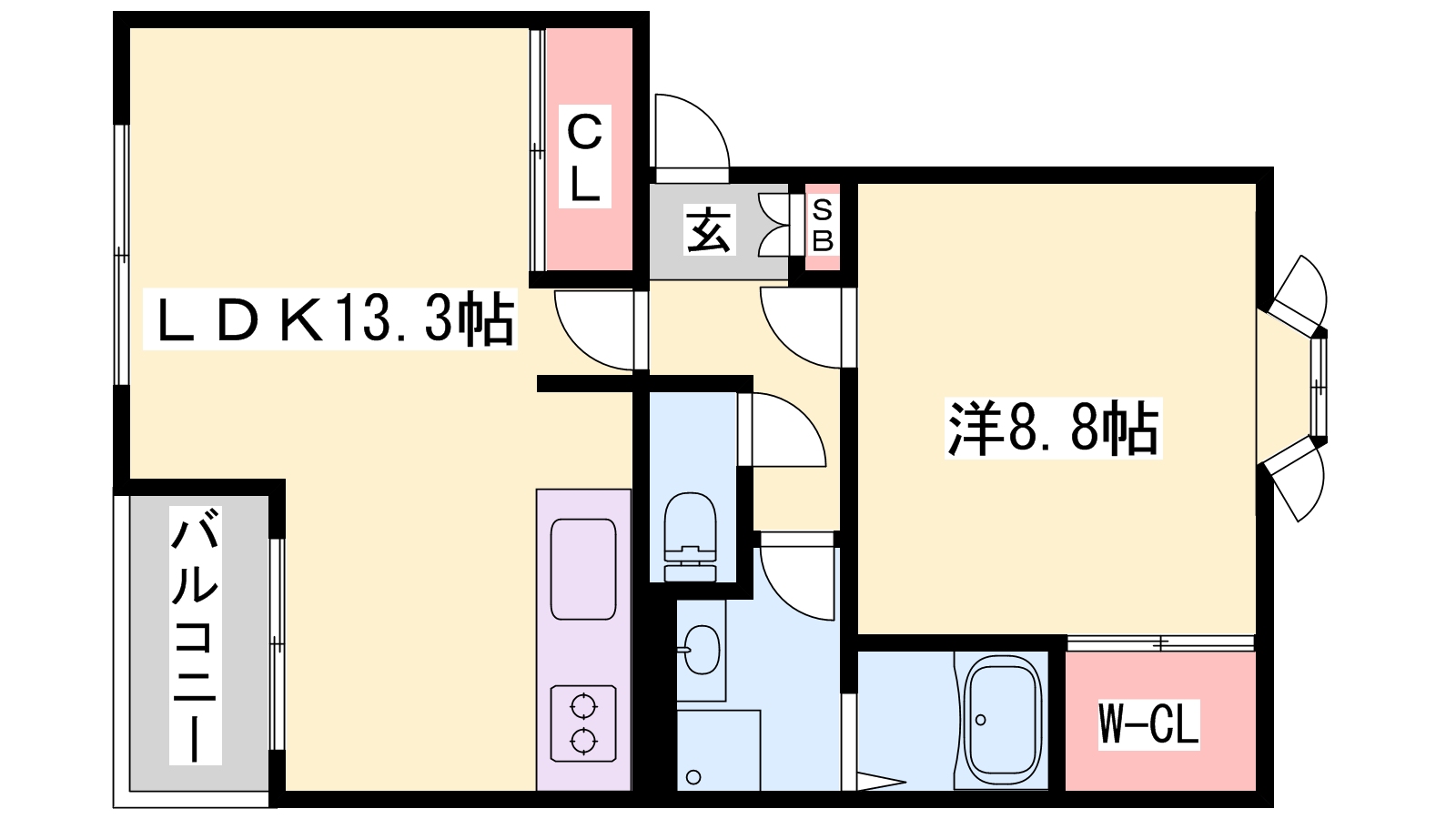 - LDK13.3帖、洋室8.8帖