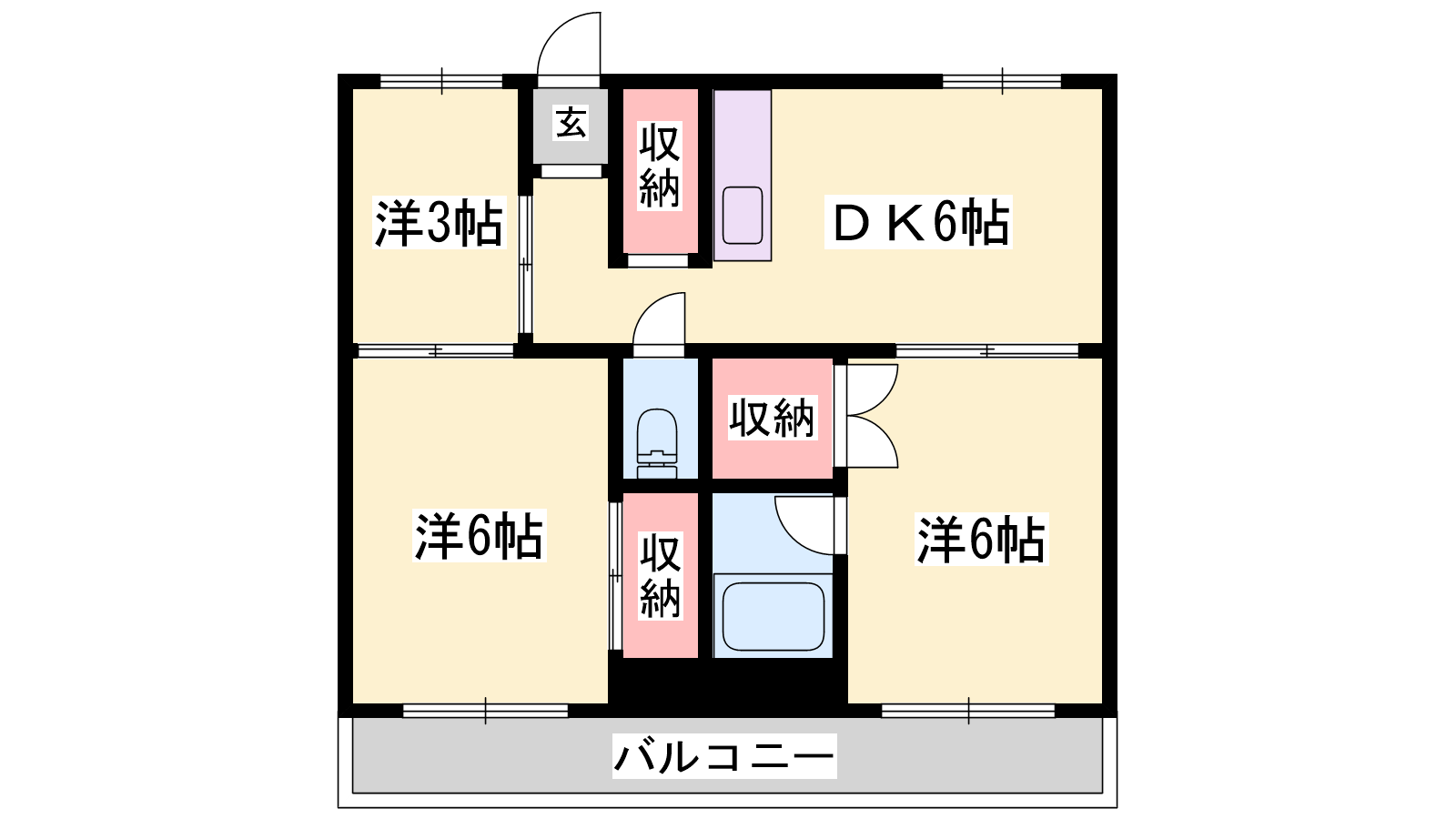 - DK6帖、洋室6帖、洋室6帖、洋室3帖