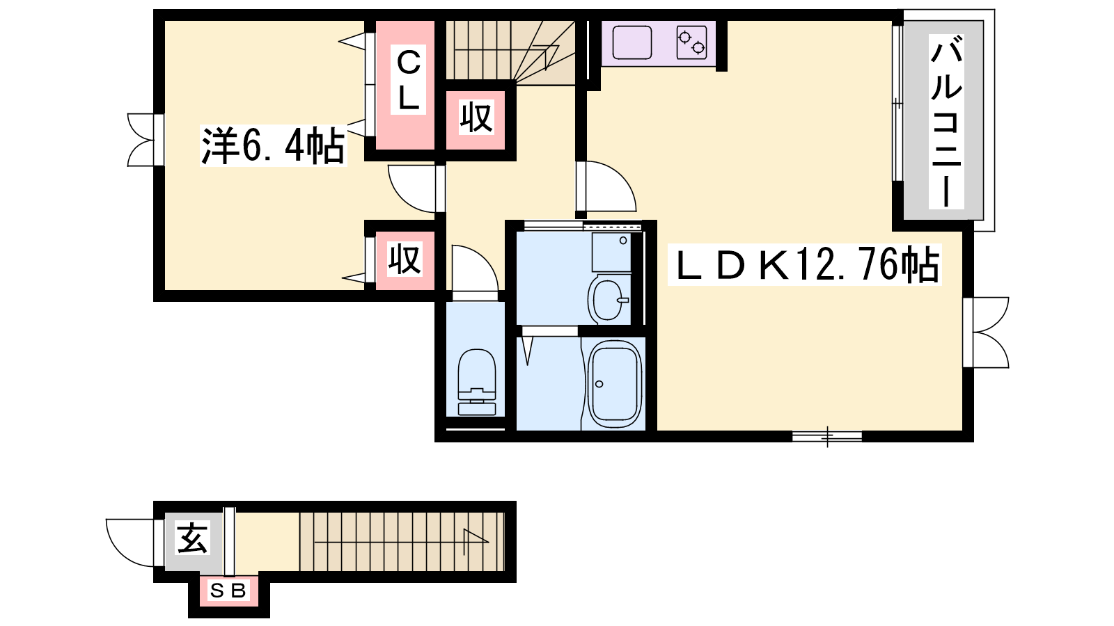 - LDK12.76帖、洋室6.4帖