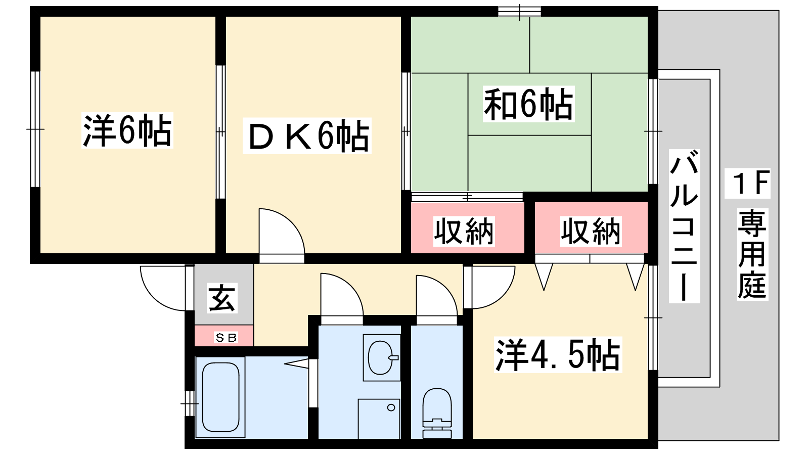 - DK6帖、洋室6帖、洋室4.5帖、和室6帖