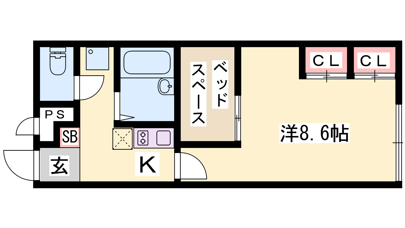 - K2帖、洋室8.6帖