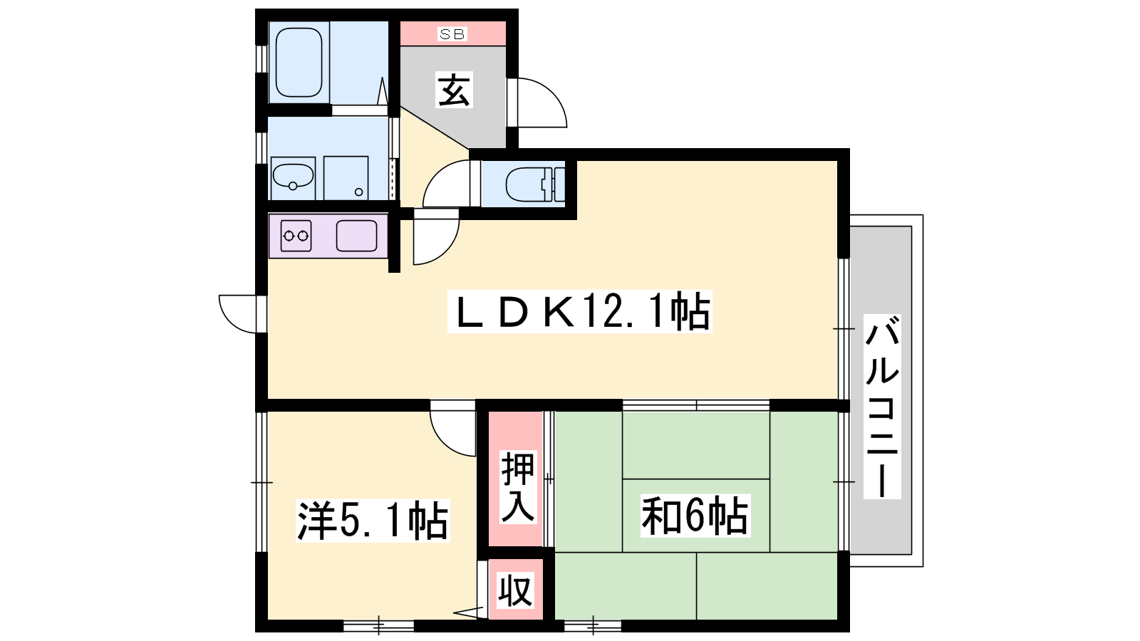 - LDK12.1帖、和室6.1帖、洋室5.1帖