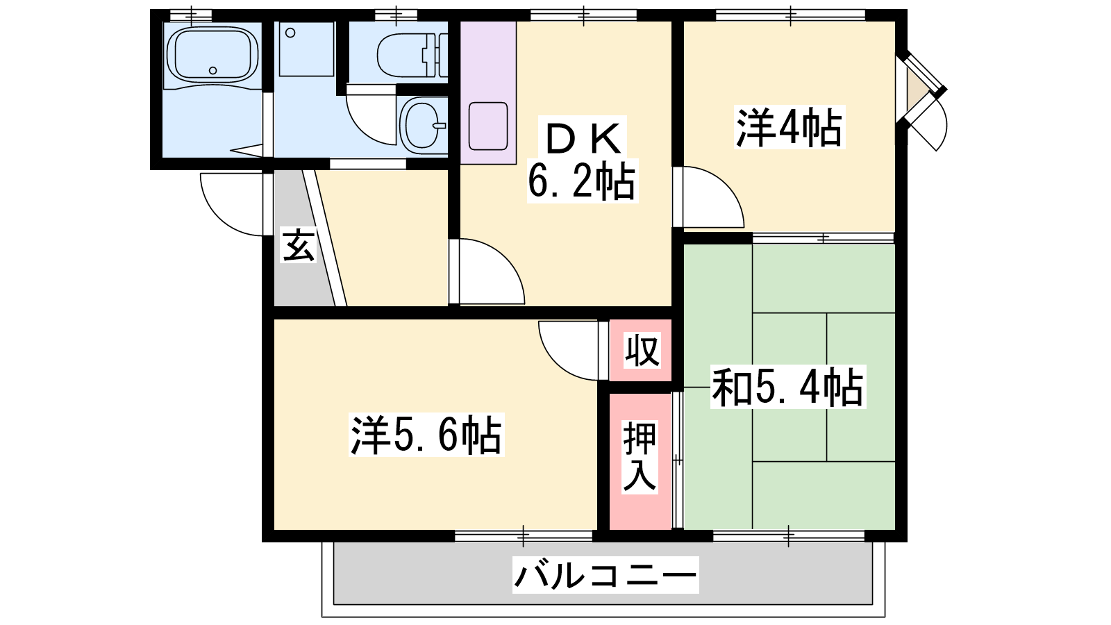 - DK6.2帖、洋室5.6帖、和室5.4帖、洋室4帖