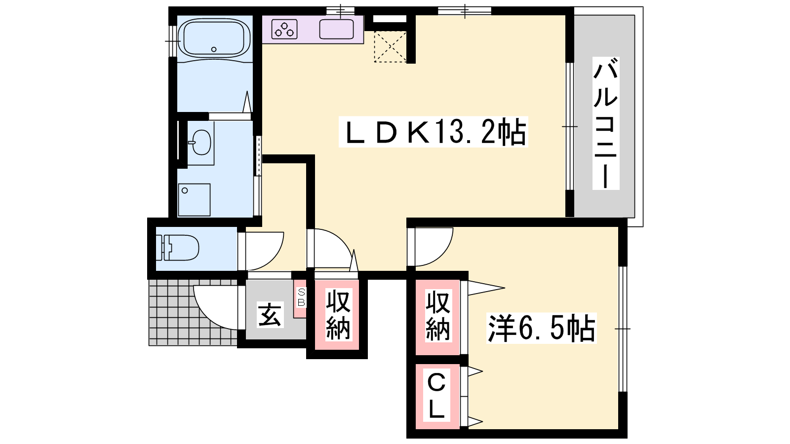 - LDK13.2帖、洋室6.5帖