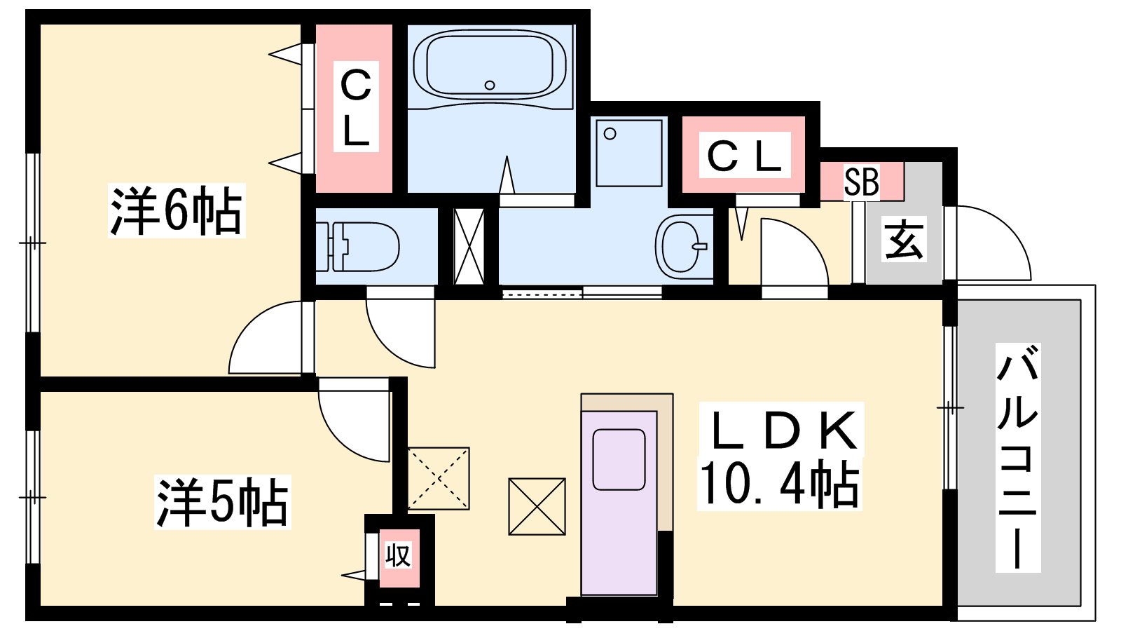 - LDK10.4帖、洋室6帖、洋室5帖
