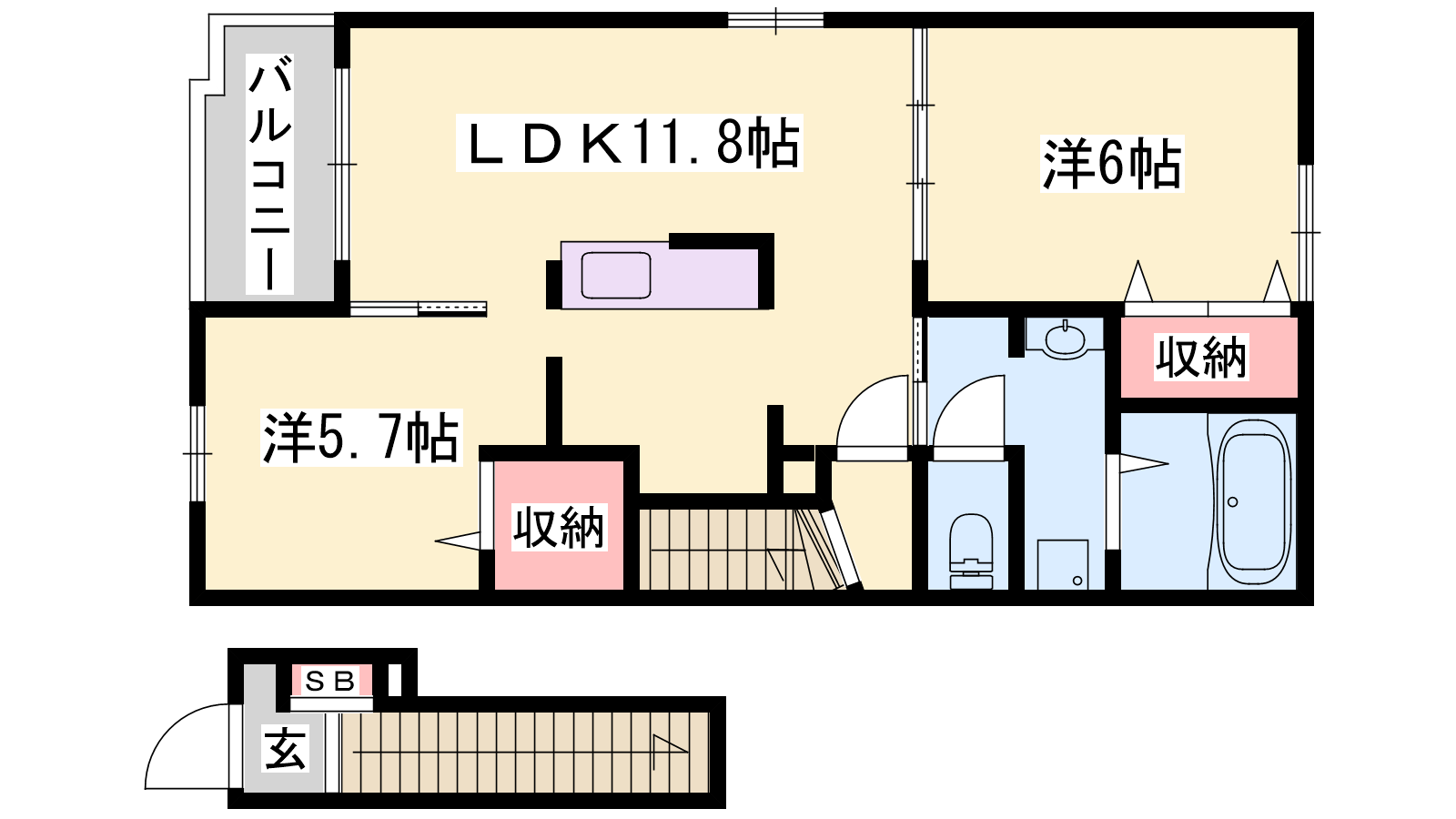 - LDK11.8帖、洋室6帖、洋室5.7帖