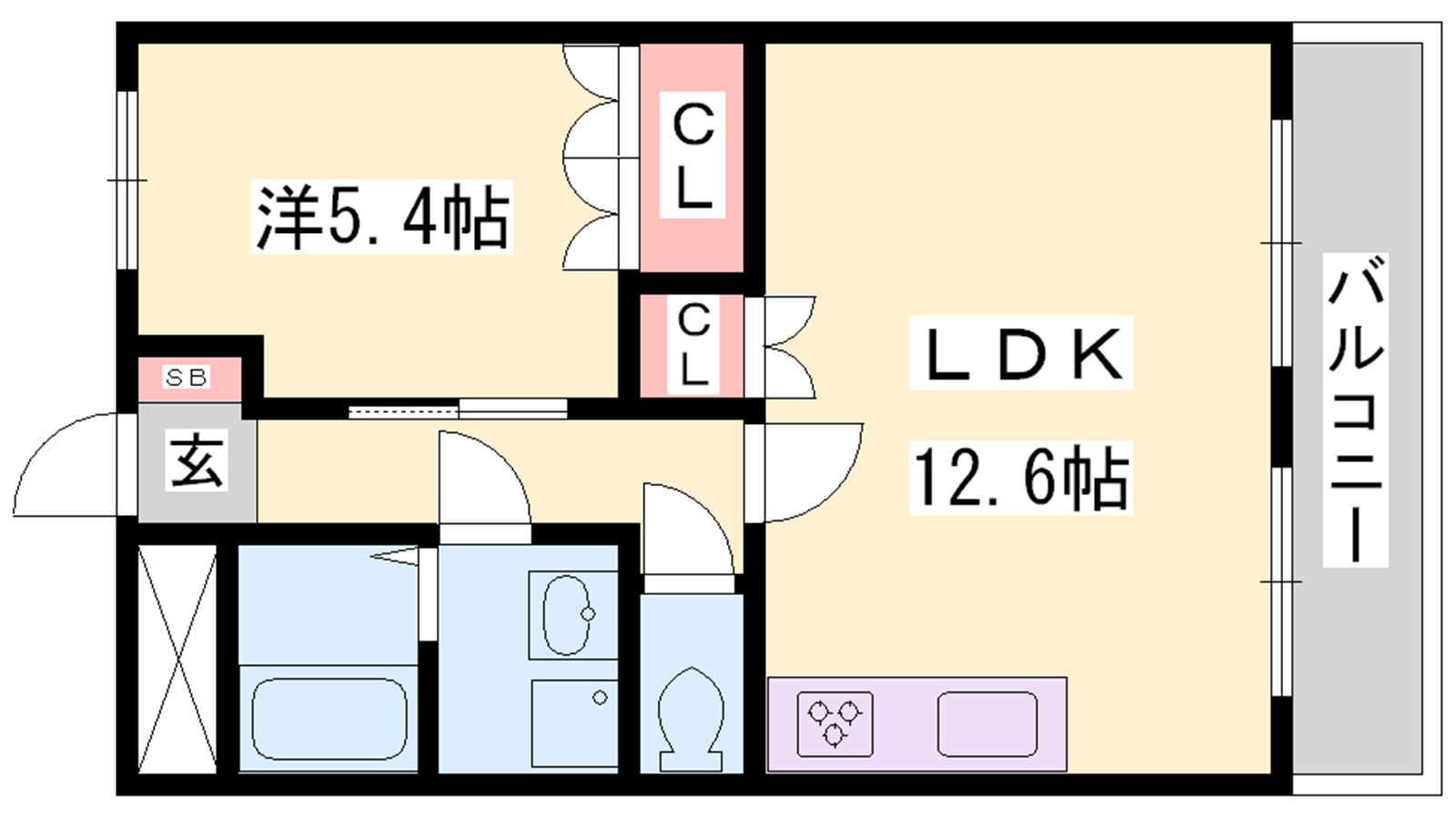 - LDK12.6帖、洋室5.4帖