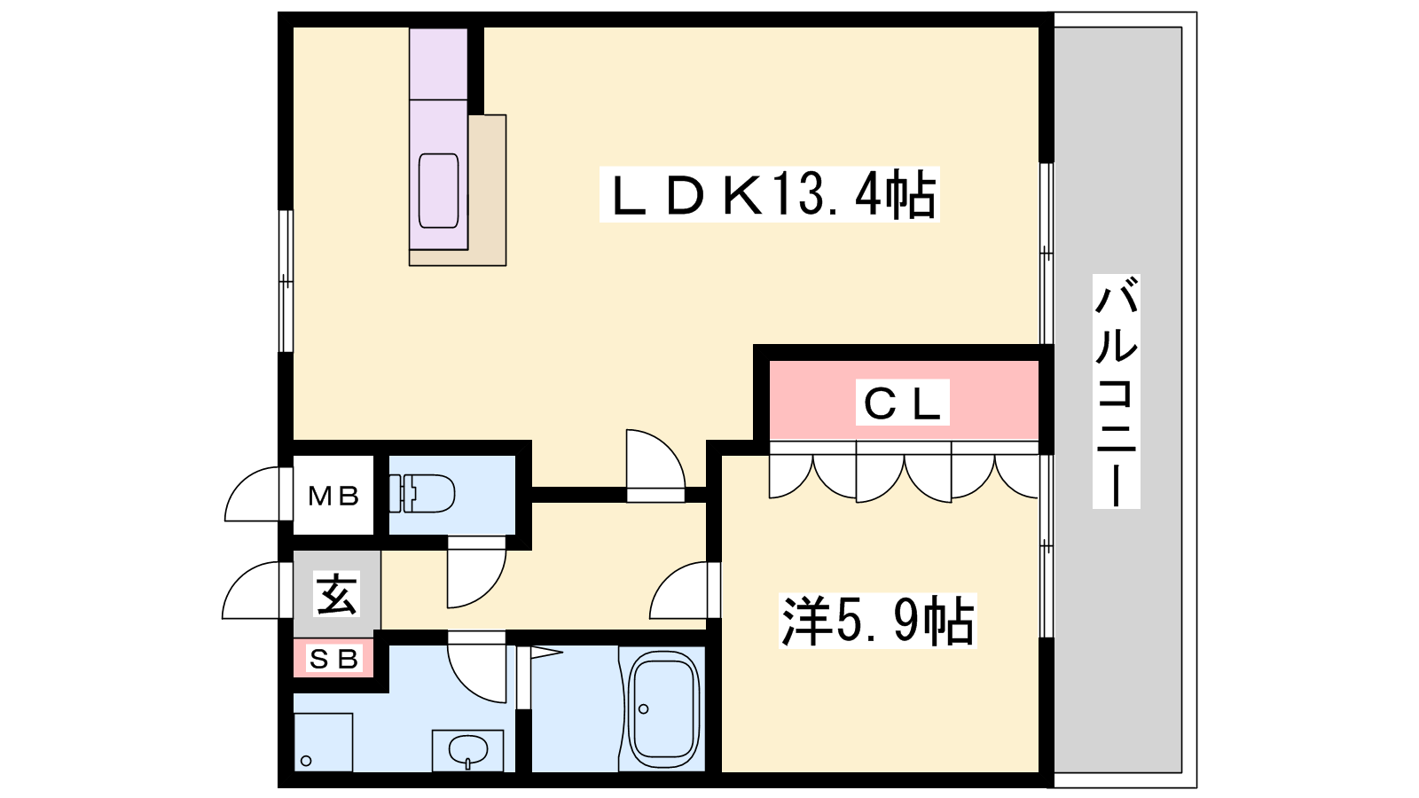 - LDK13.4帖、洋室5.9帖