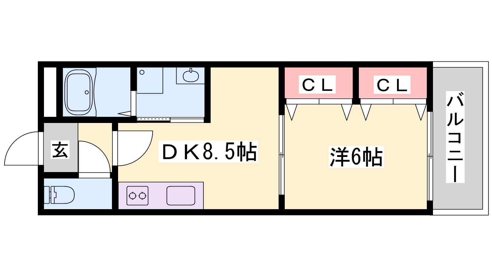 - DK8.5帖、洋室6帖