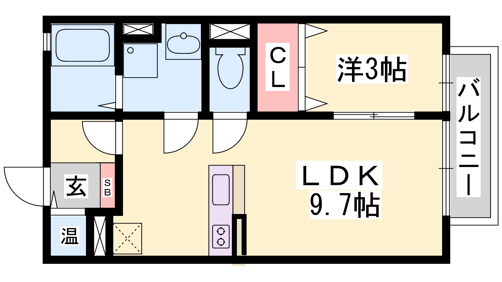 - LDK9.7帖、洋室3帖