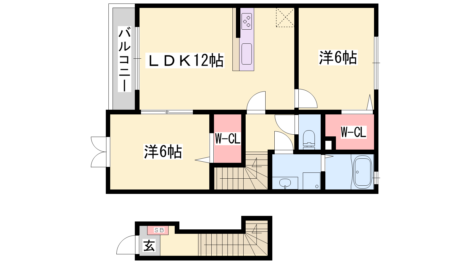 - LDK12帖、洋室6帖、洋室6帖