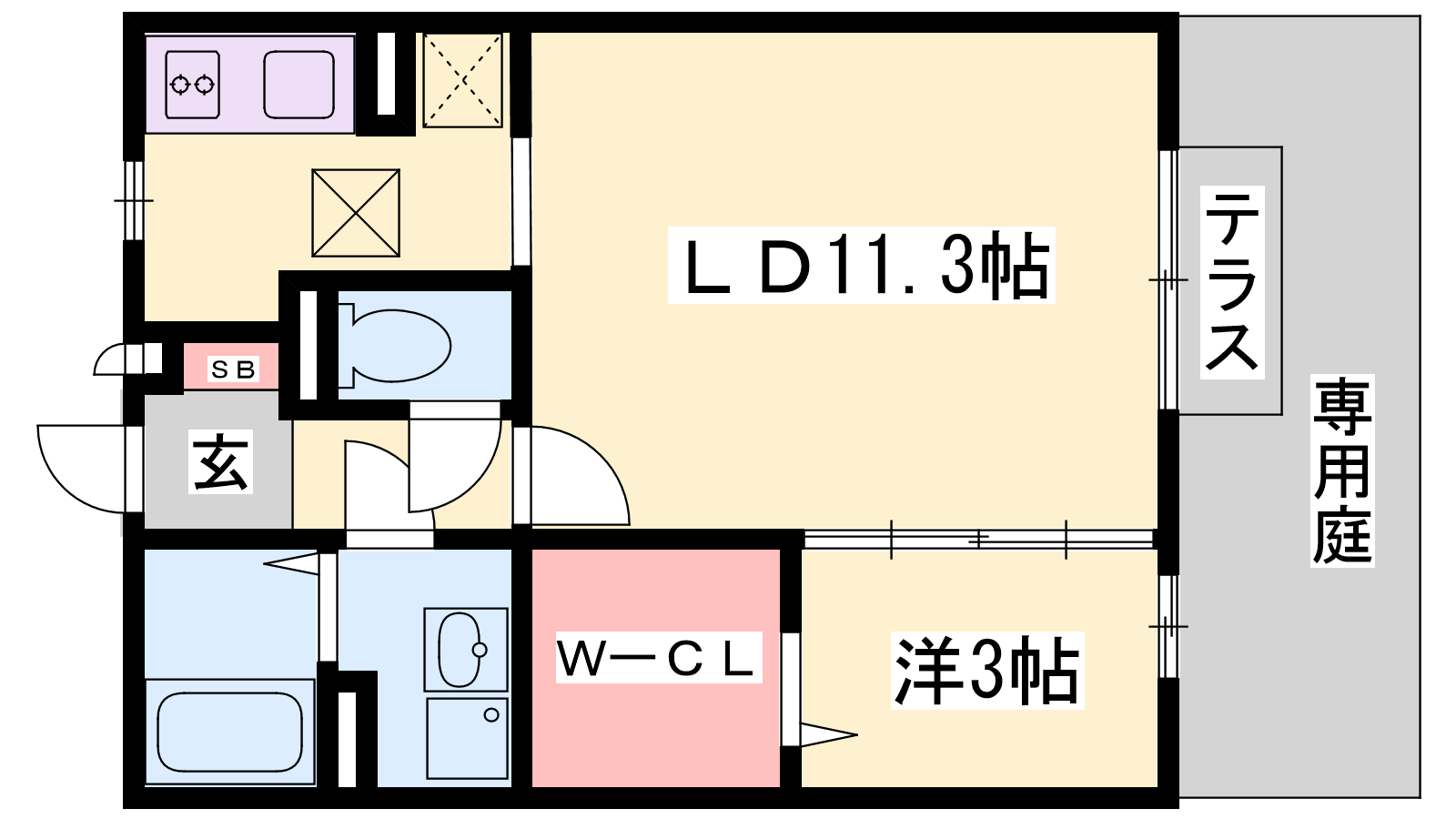 - LDK13.3帖、洋室3帖