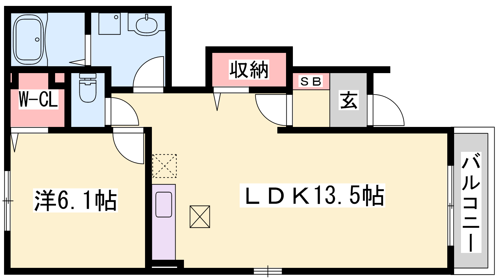 - LDK13.5帖、洋室6.1帖