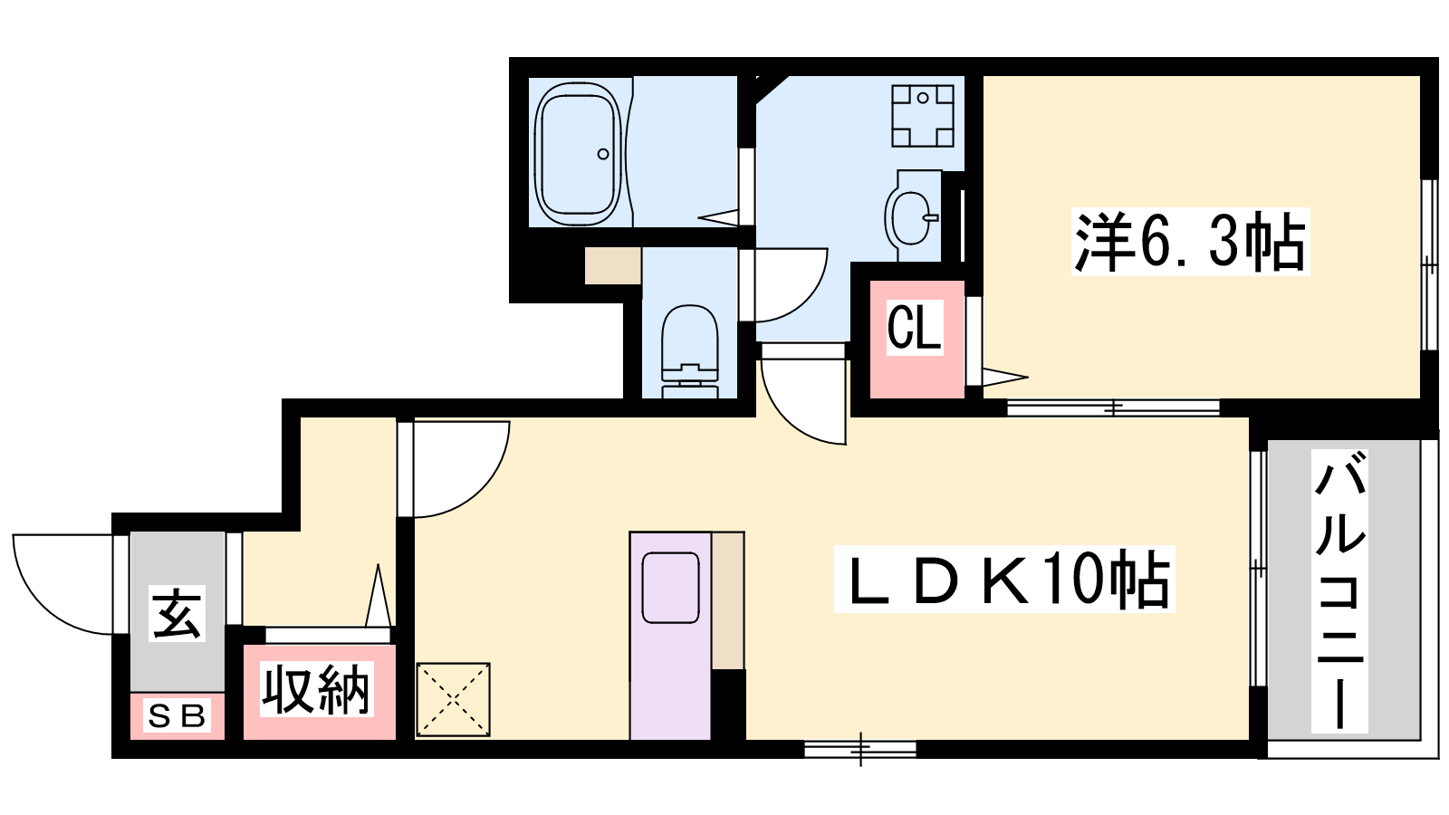 - LDK10帖、洋室6.3帖
