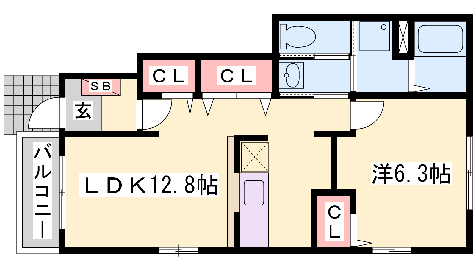 - LDK12.8帖、洋室6.3帖