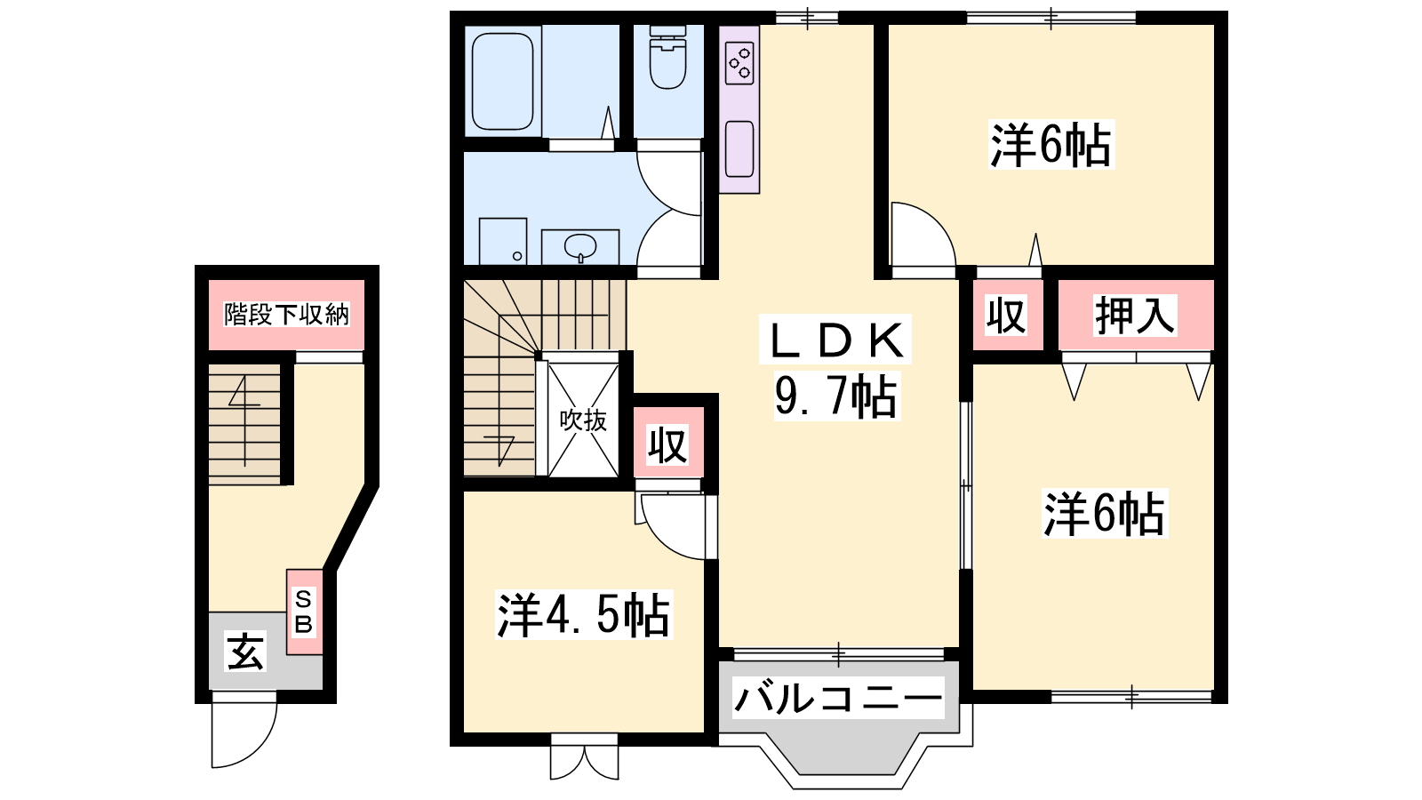 - LDK10帖、洋室6帖、洋室4.5帖、洋室6帖
