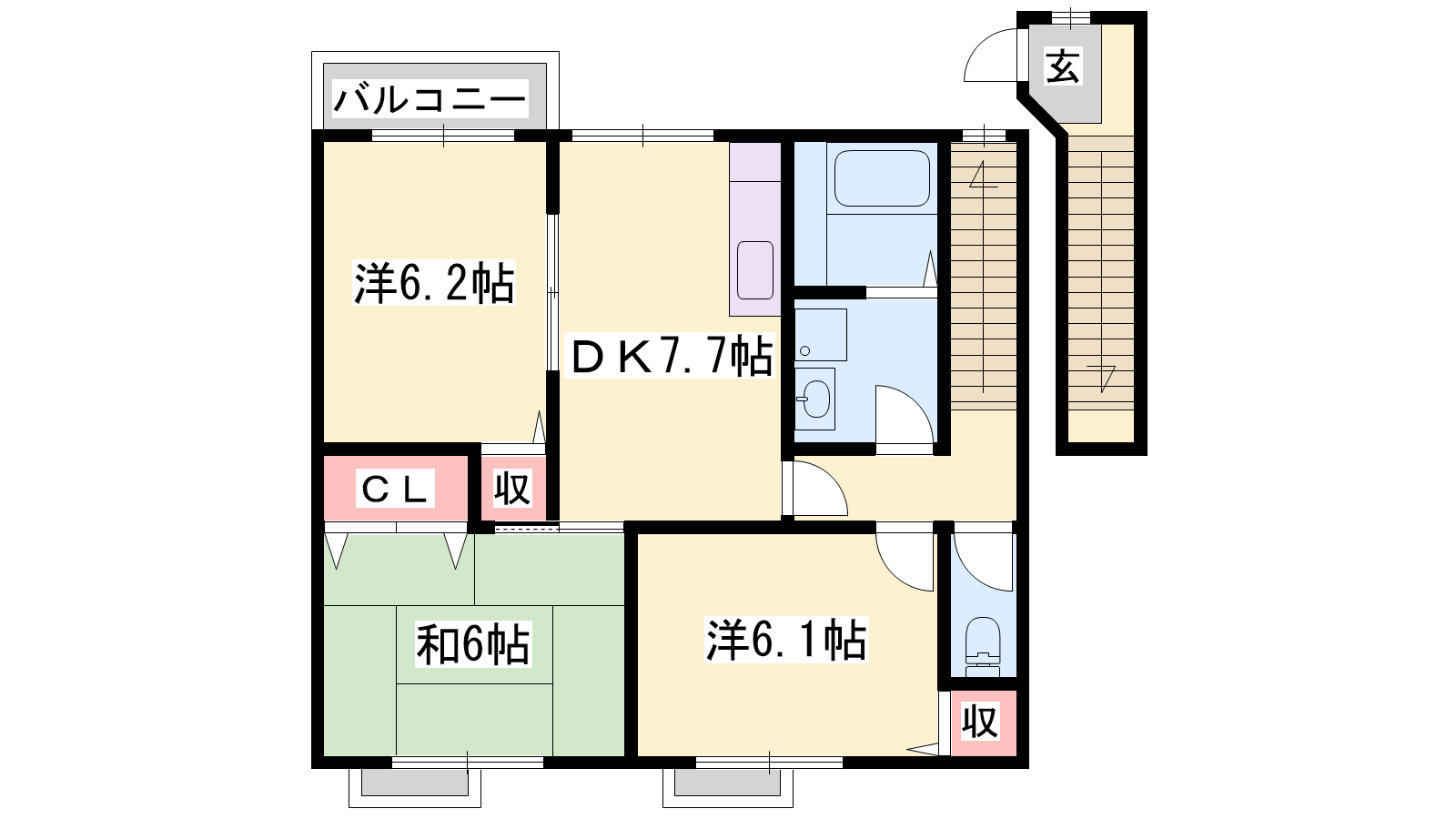- DK7.7帖、洋室6.2帖、洋室6.1帖、和室6帖