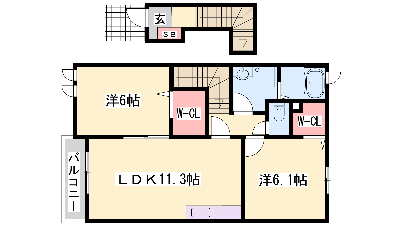 - LDK11.3帖、洋室6.1帖、洋室6帖
