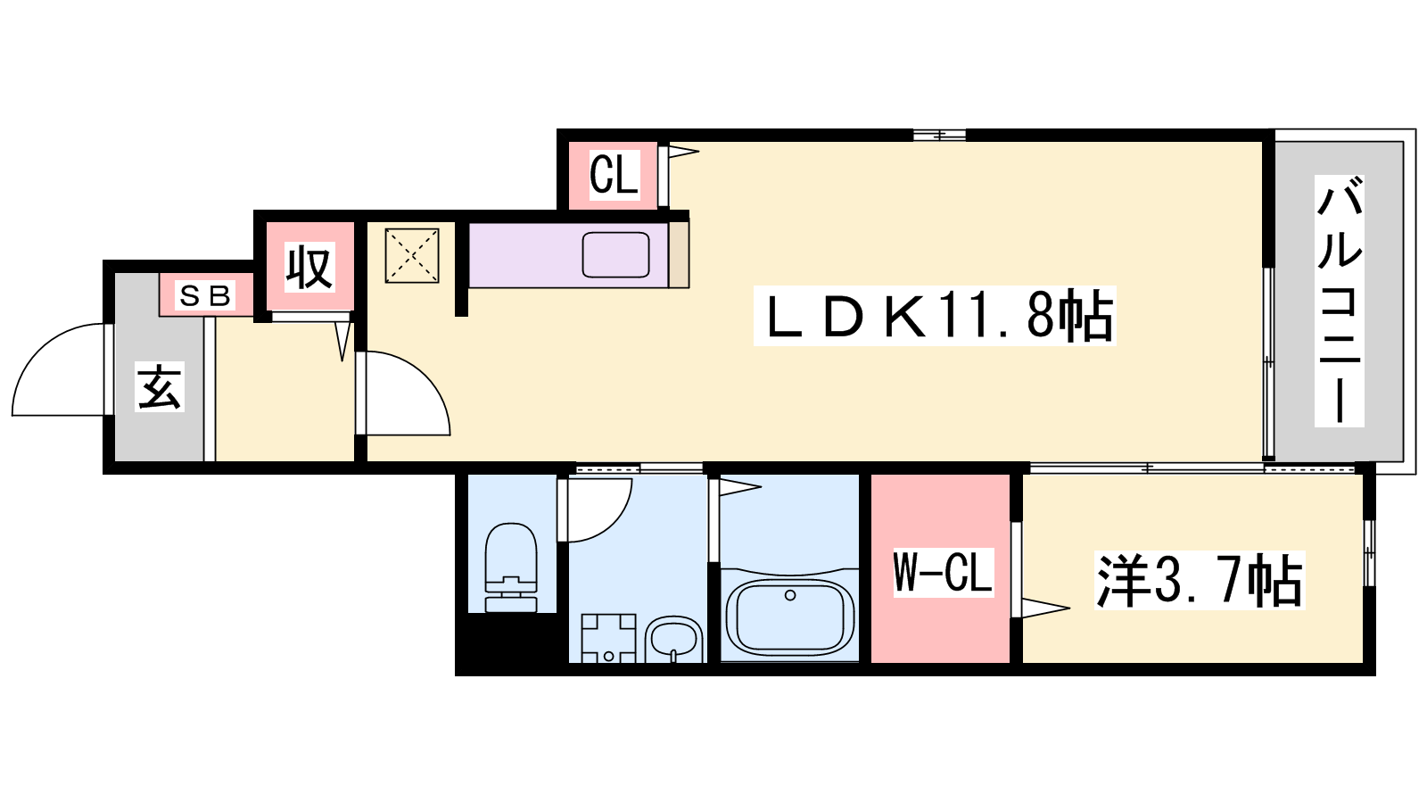 - LDK11.8帖、洋室3.7帖
