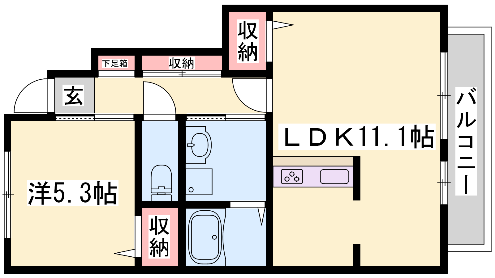 - LDK11.1帖、洋室5.3帖