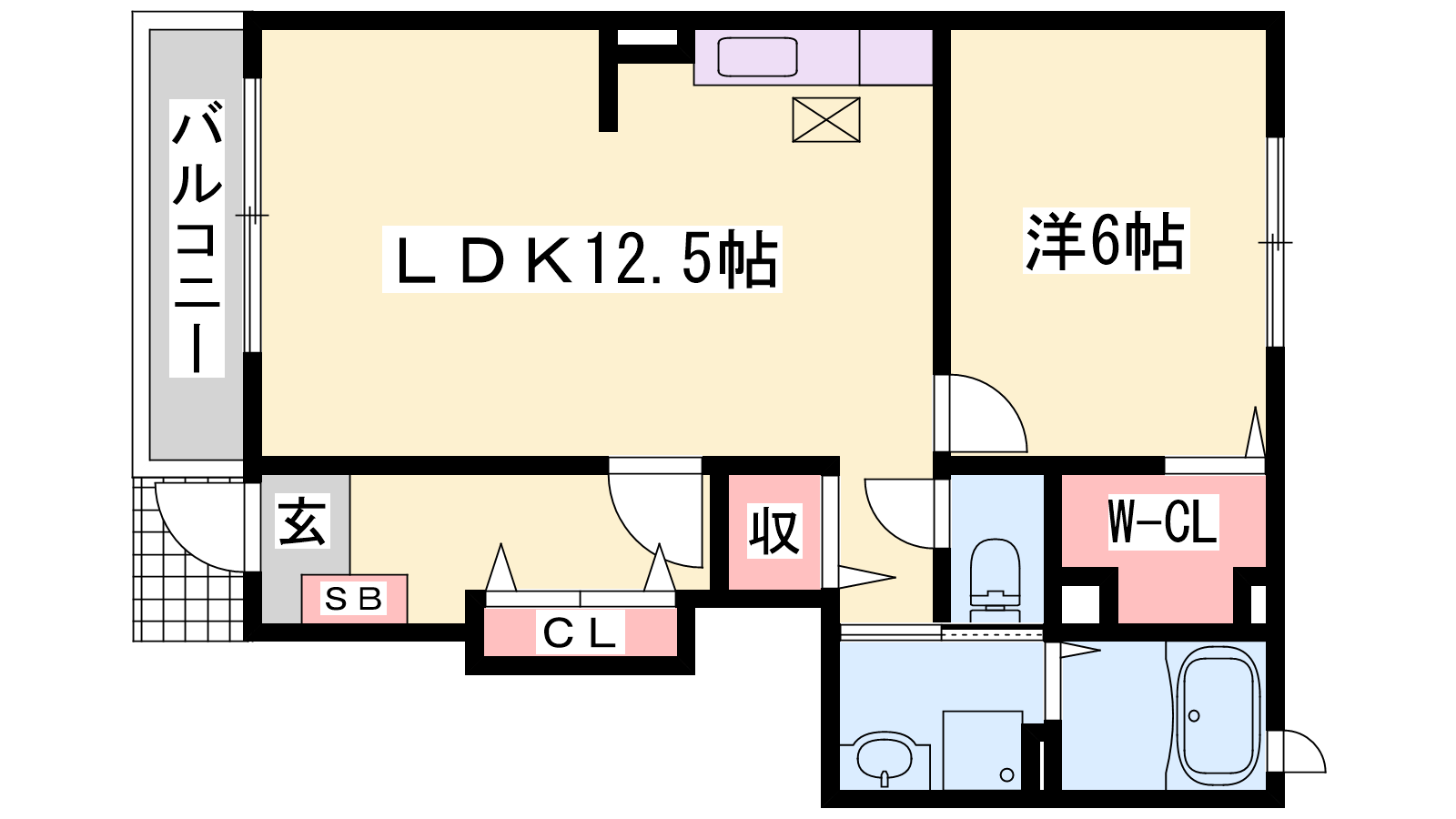 - LDK12.5帖、洋室6帖
