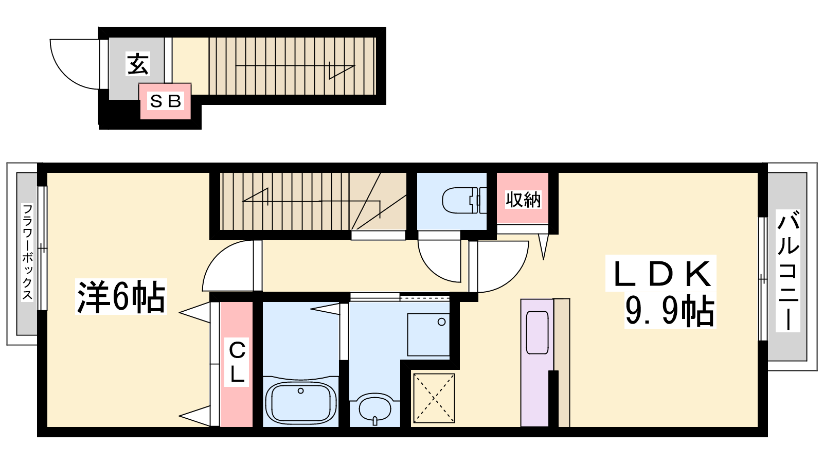 - LDK9.9帖、洋室6帖