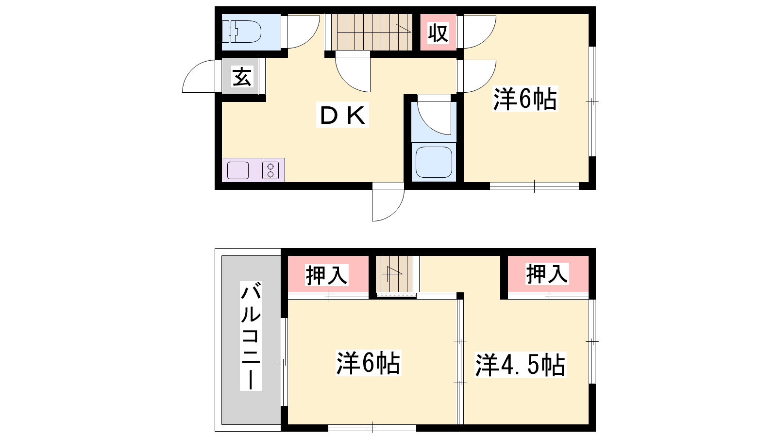 - DK4帖、洋室6帖、洋室6帖、洋室4.5帖