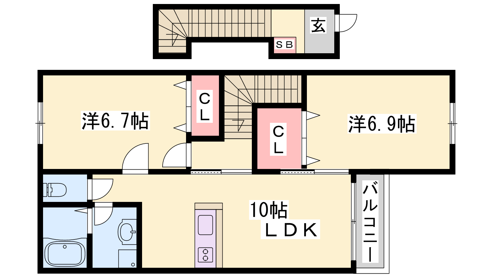 - LDK10帖、洋室6.9帖、洋室6.7帖