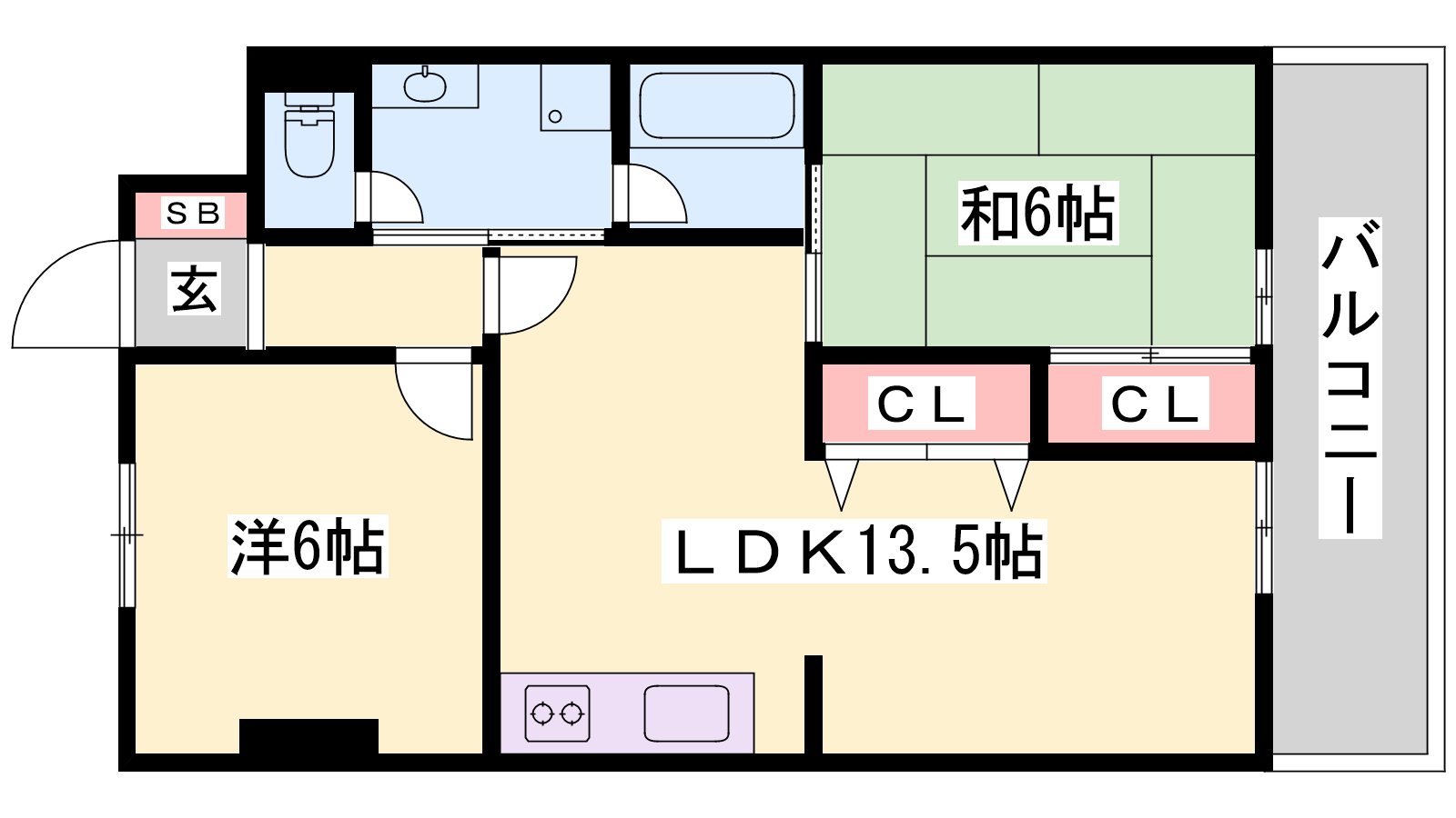 - LDK13.5帖、和室6帖、洋室6帖