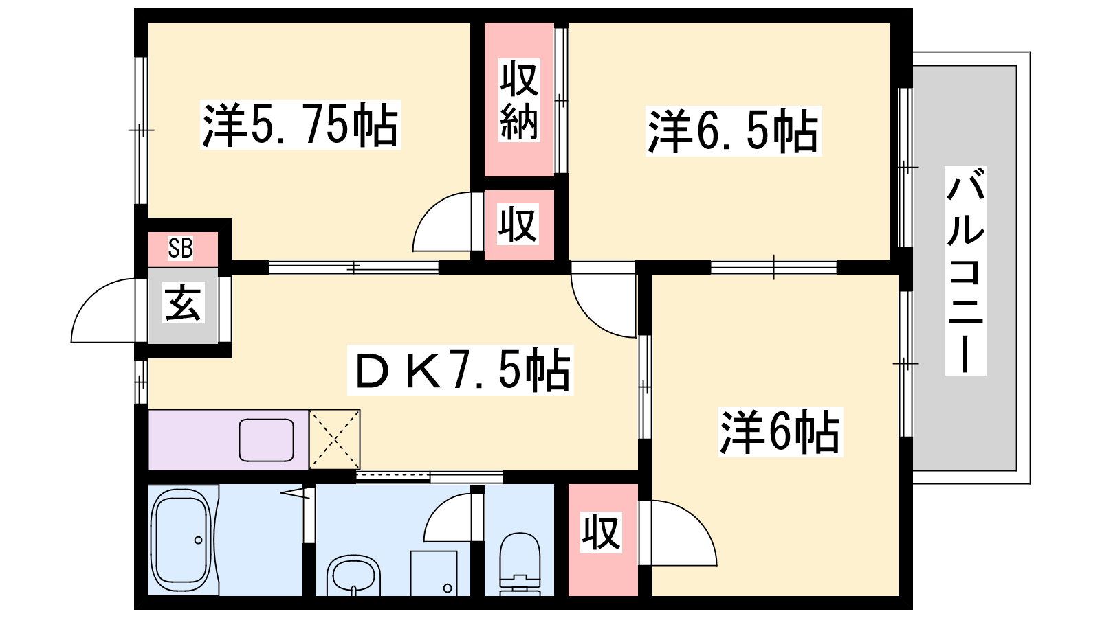 - DK7.5帖、洋室6.5帖、洋室6帖、洋室5.75帖