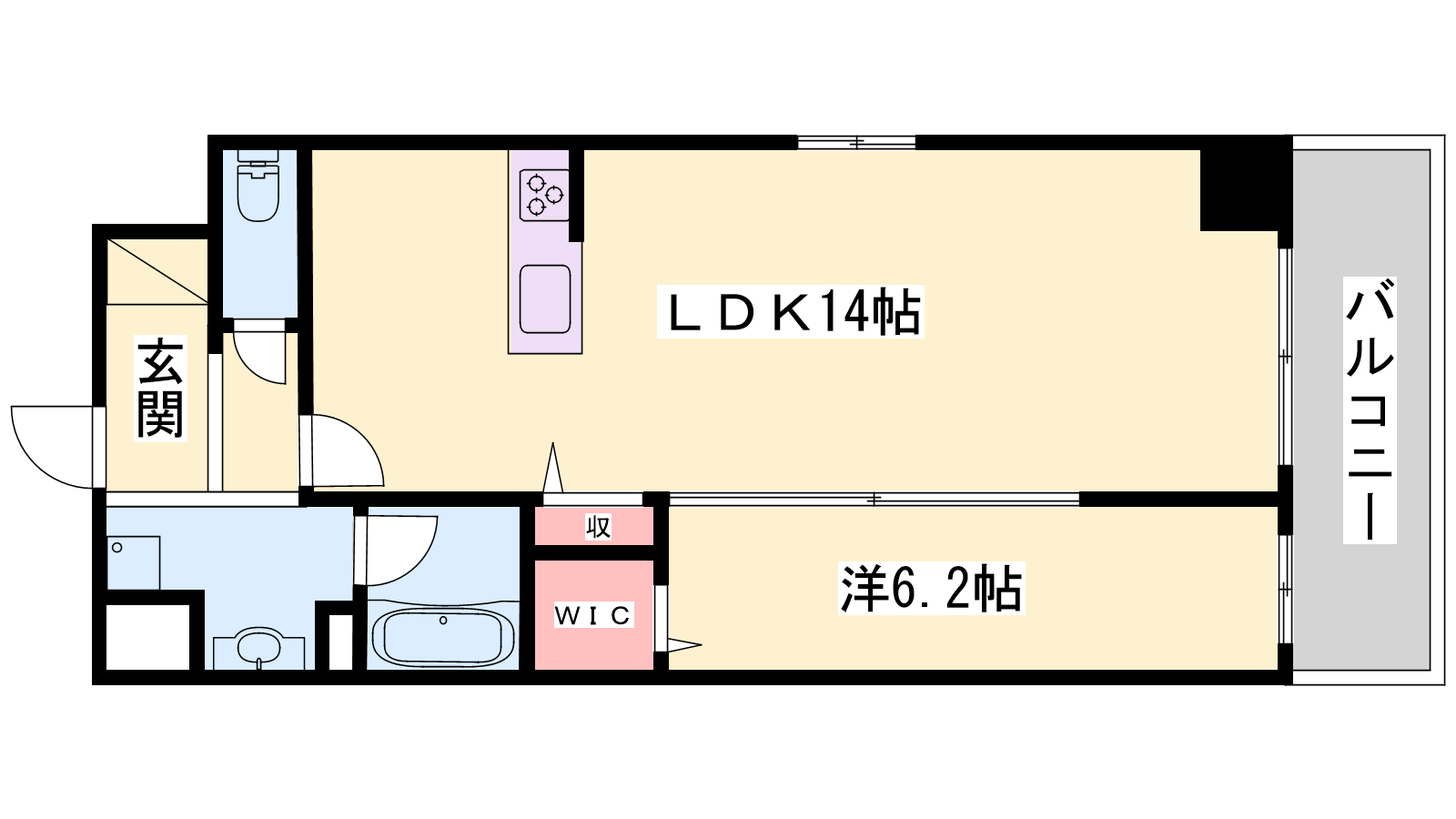 - LDK14帖、洋室6.2帖