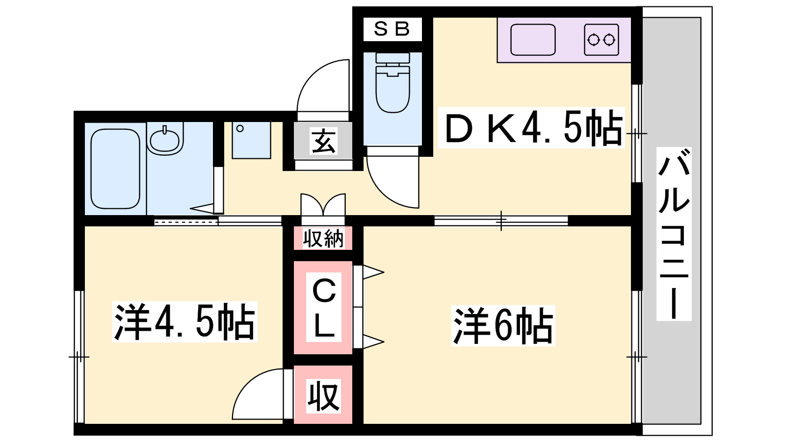 - DK4.5帖、洋室6帖、洋室4.5帖