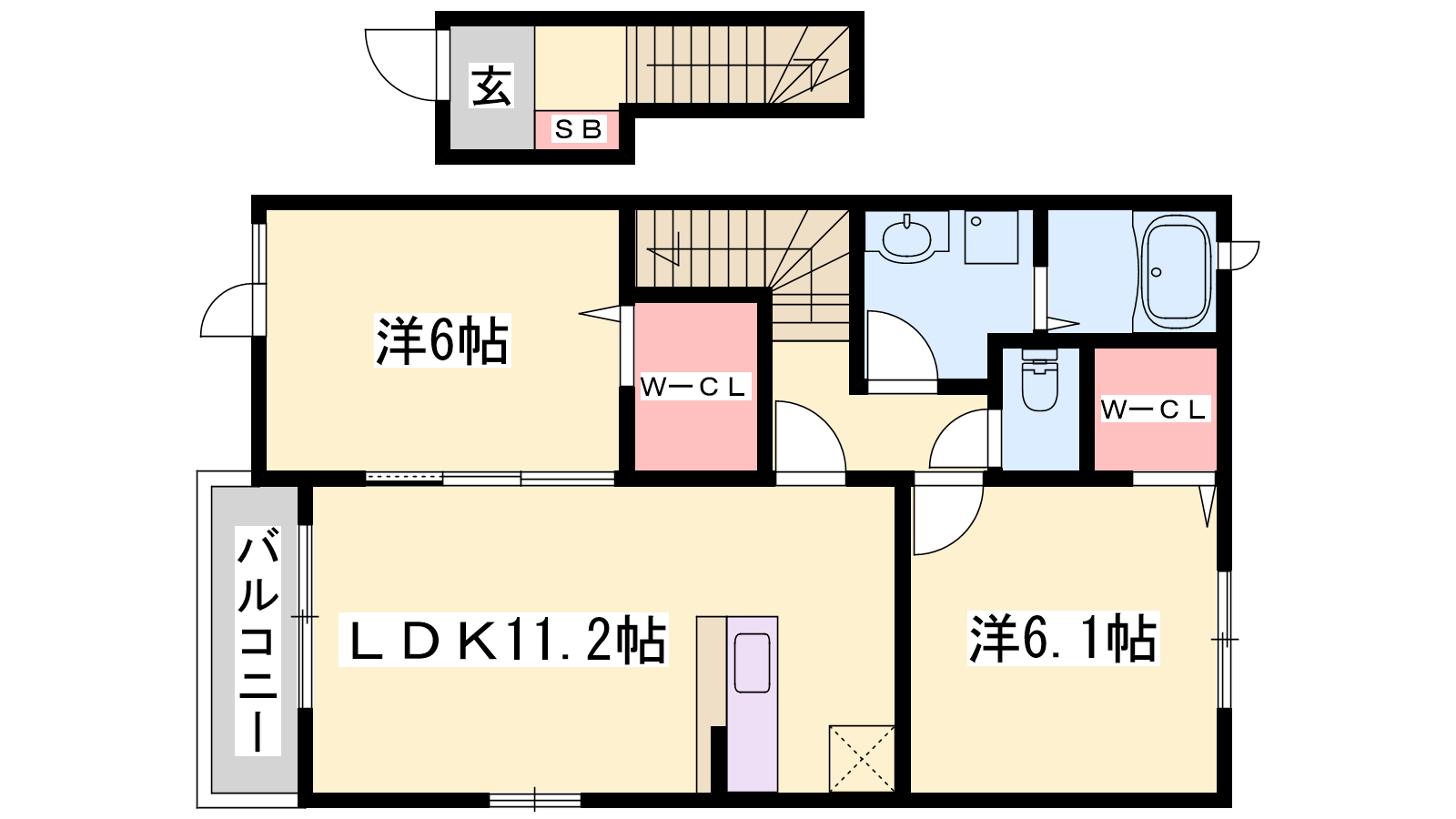 - LDK11.2帖、洋室6.1帖、洋室6帖