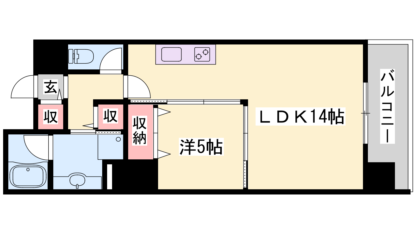 - LDK14帖、洋室5帖