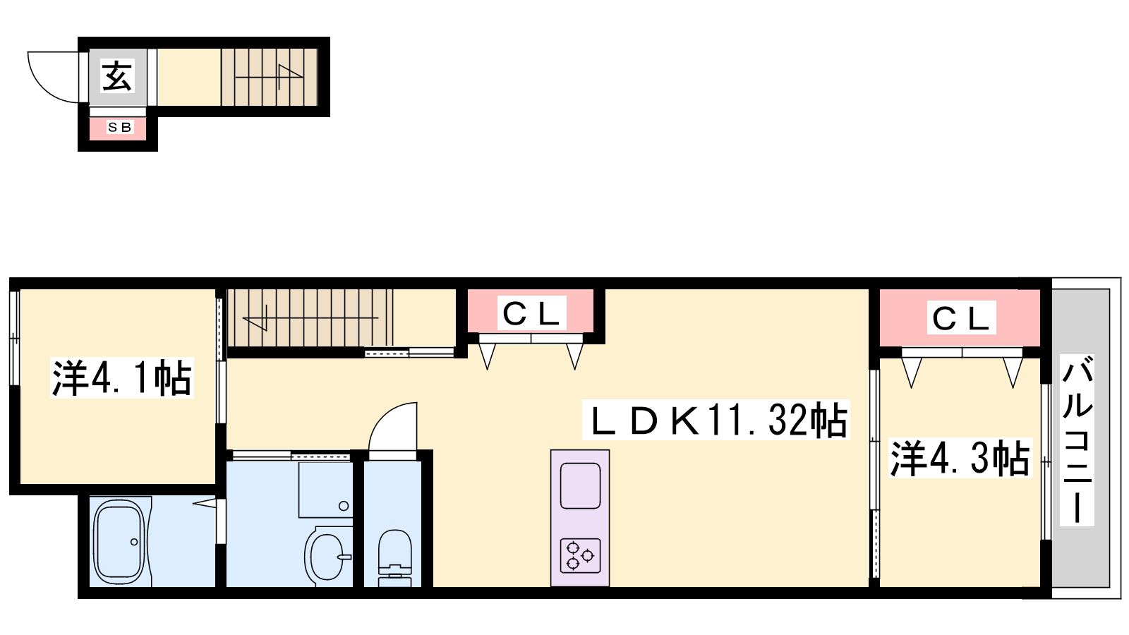 - LDK11.32帖、洋室4.3帖、洋室4.1帖