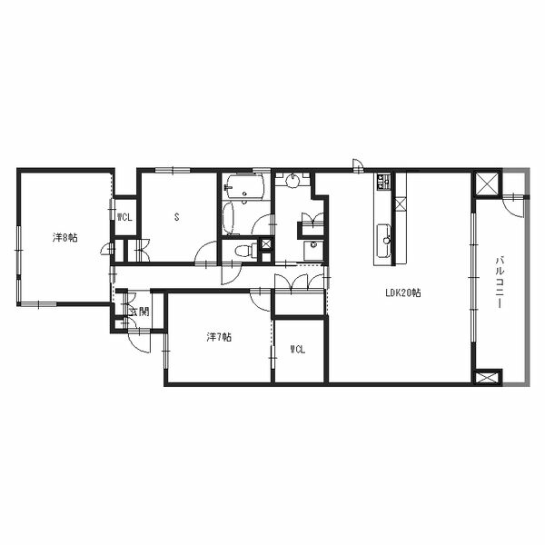 - LDK20帖、洋室7帖、洋室8帖、S5帖