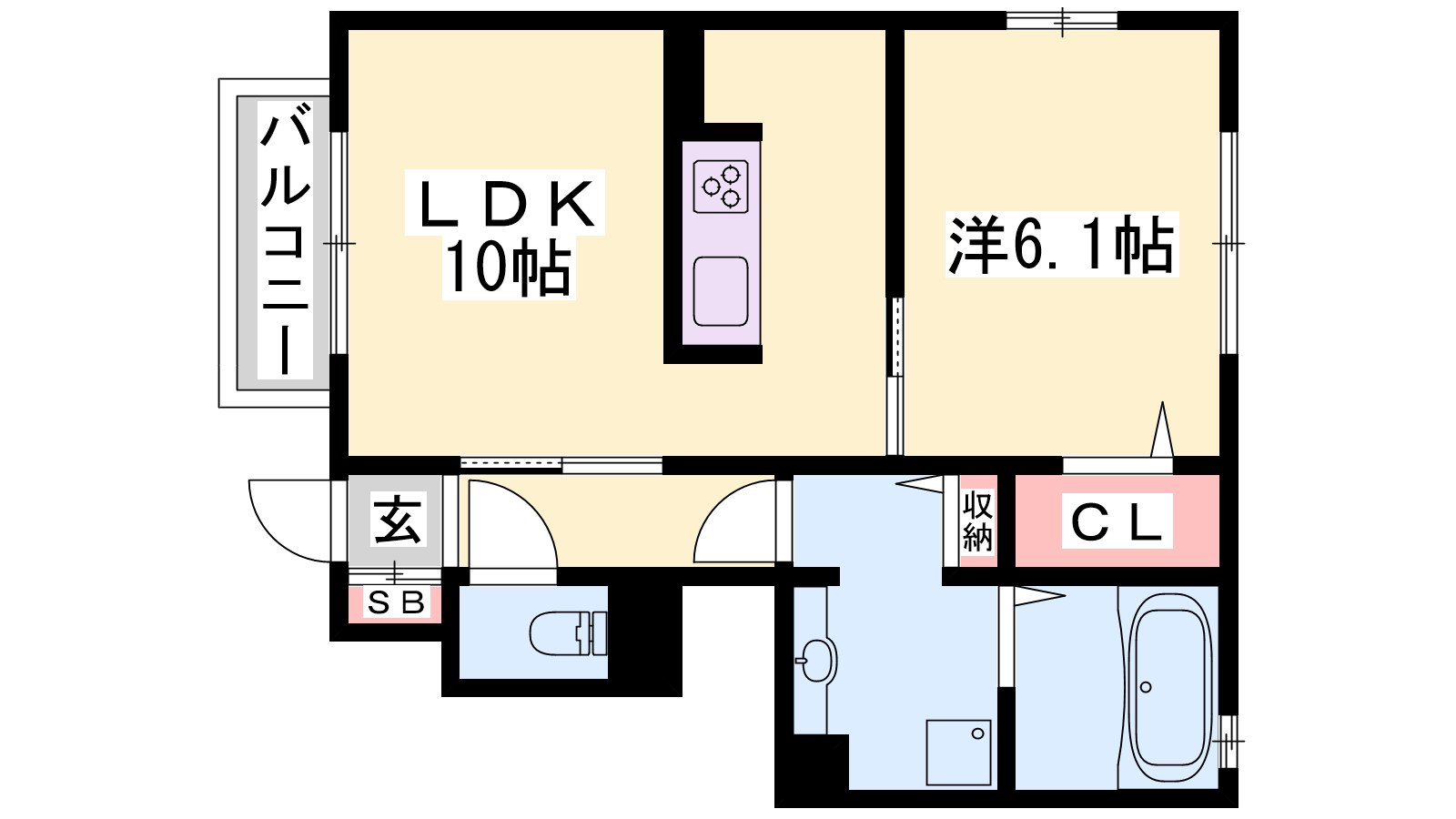 - LDK10帖、洋室6.1帖