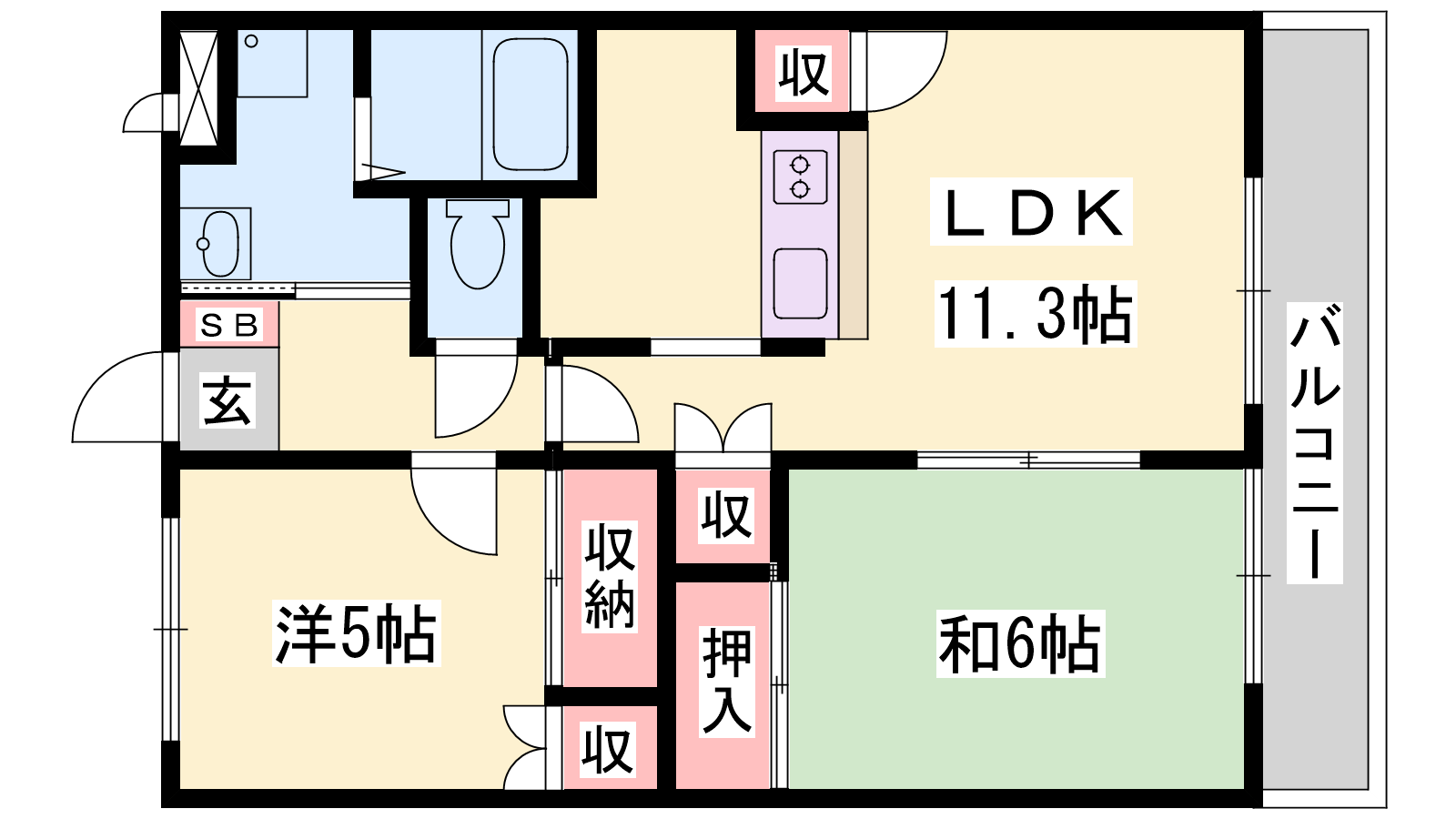 - LDK11.3帖、洋室5帖、和室6帖