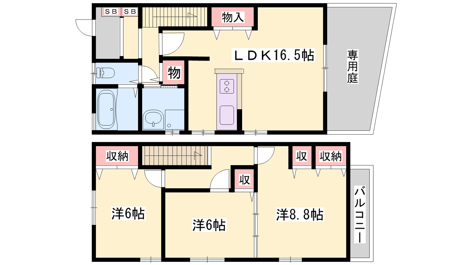 - LDK16.5帖、洋室8.8帖、洋室6帖、洋室6帖