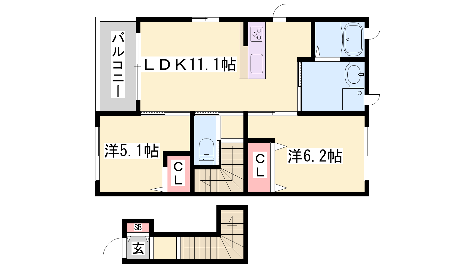 - LDK11.1帖、洋室6.2帖、洋室5.1帖
