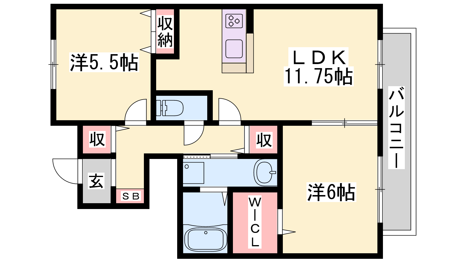 - LDK11.75帖、洋室5.5帖、洋室6帖