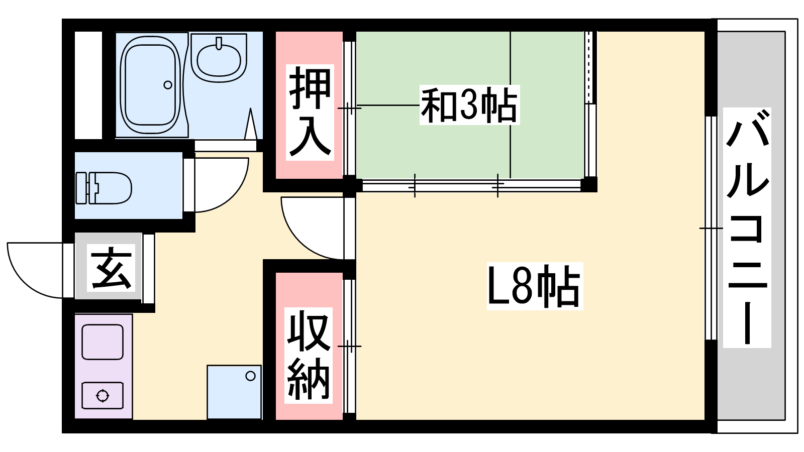 - L8帖、和室3帖