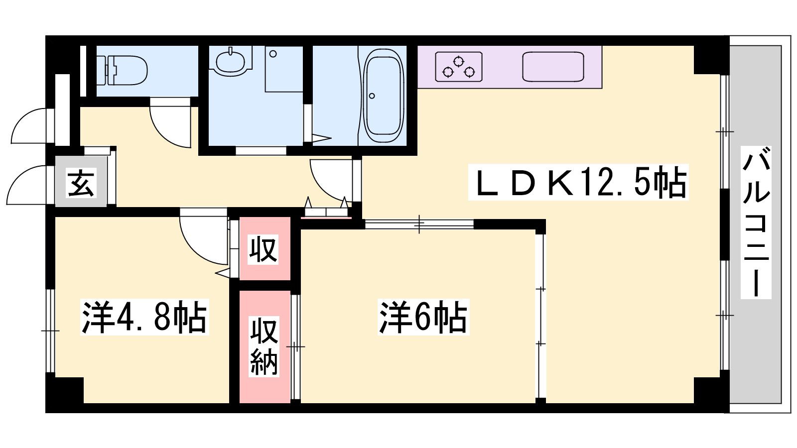 - LDK12.5帖、洋室6帖、洋室4.8帖