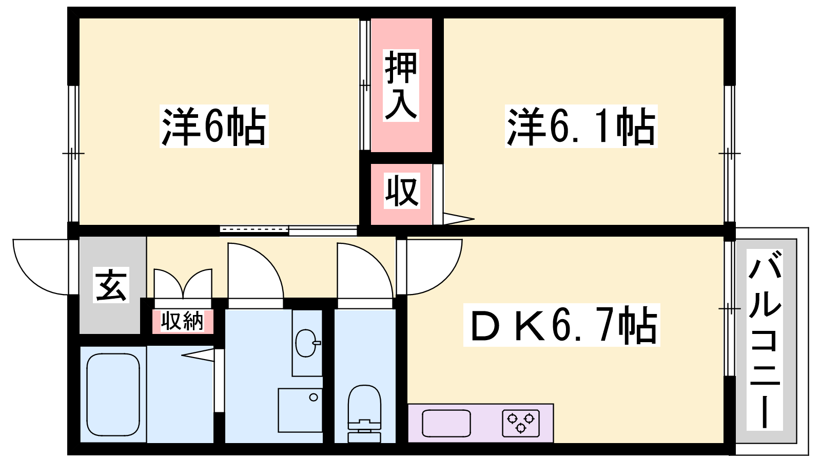 - DK6.7帖、洋室6.1帖、洋室6帖