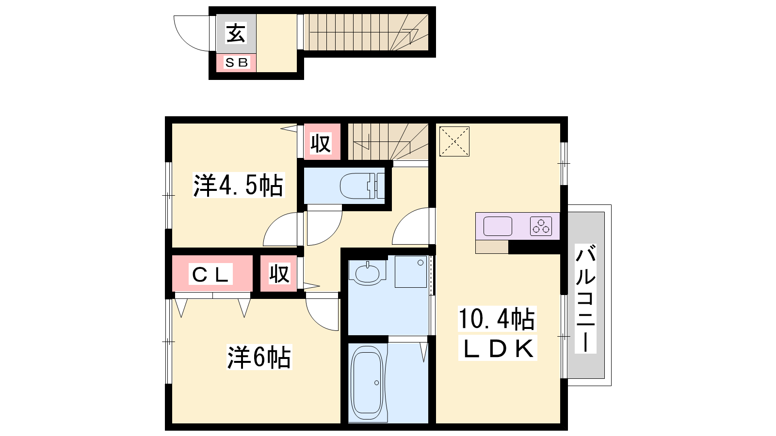 - LDK10.4帖、洋室6帖、洋室4.5帖