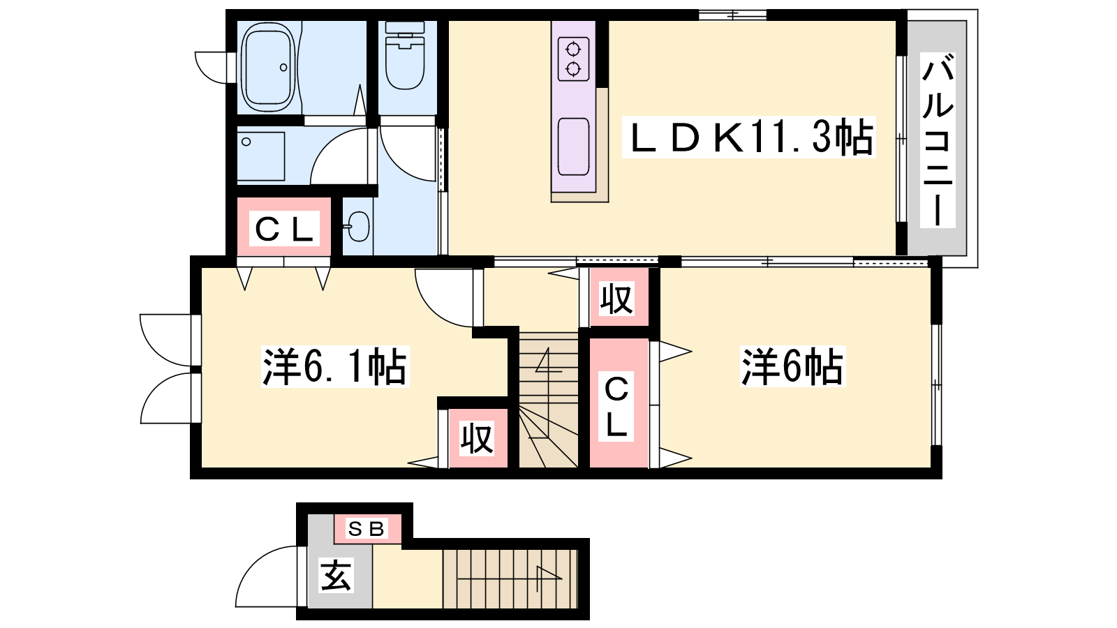 - LDK11.3帖、洋室6.1帖、洋室6帖